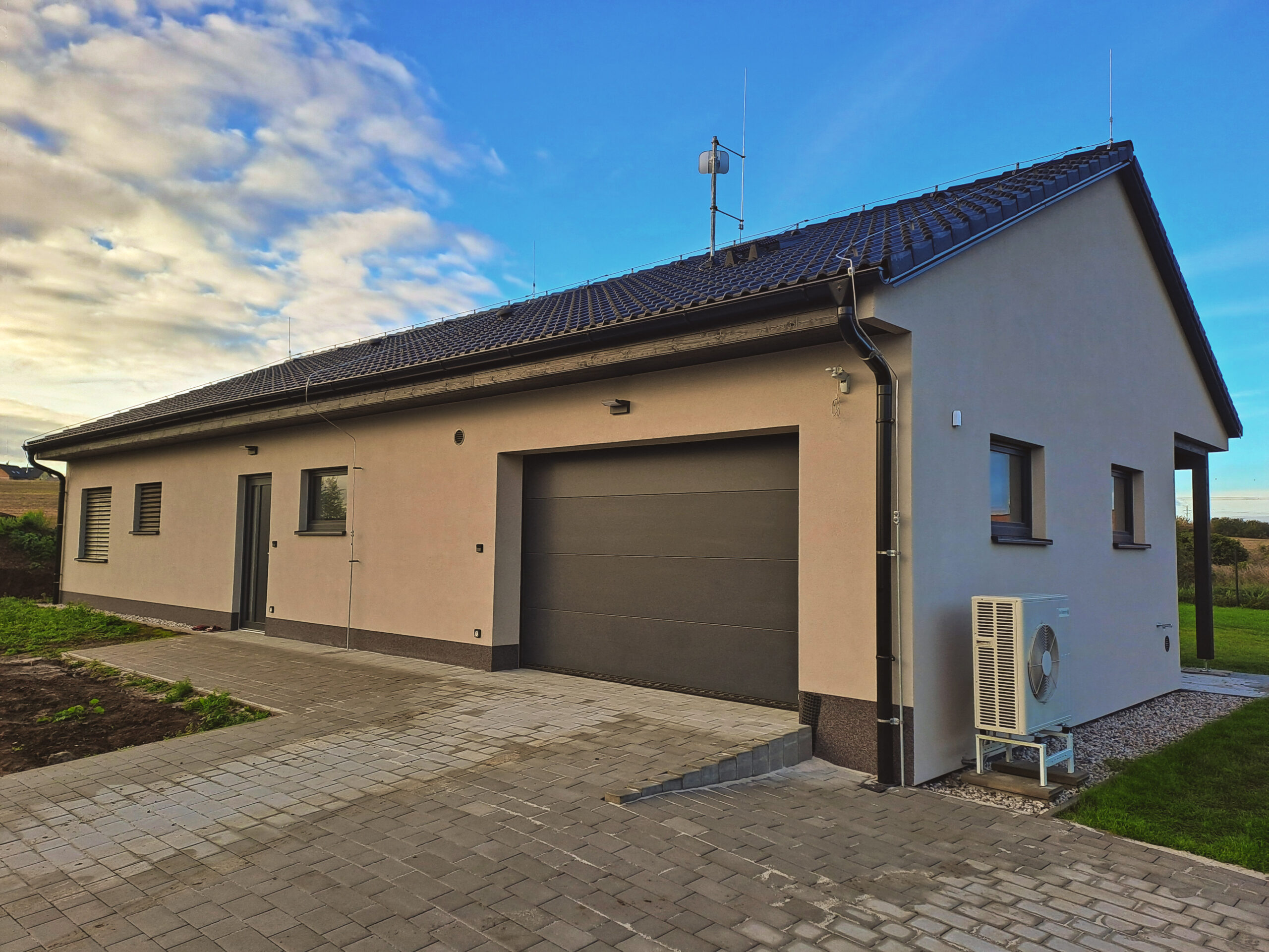 – dům odpovídá současným standardům: tepelné čerpadlo (vzduch-voda), jednovrstvé zdivo bez nutnosti zateplovat, foukaná izolace stropu